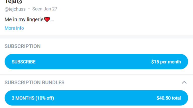 Mesečna članarina za dostop do njenih vsebin znaša 25 dolarjev. Po plačilu uporabnik pridobi dostop do profila, fotografij, krajših videov ter možnost pošiljanja sporočil oziroma klepeta.