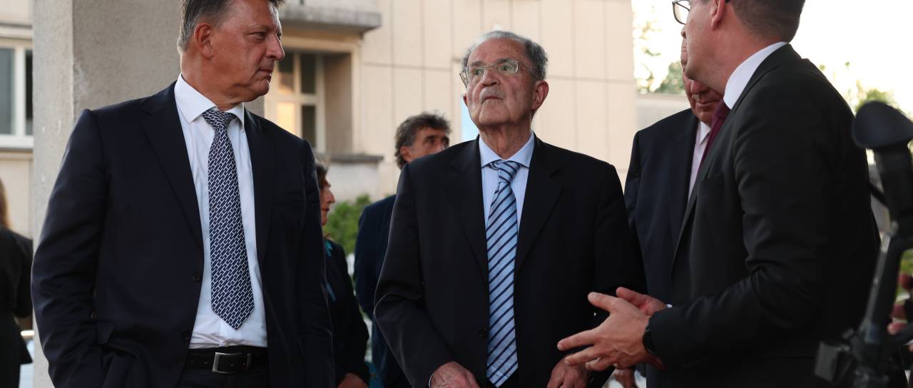 Na Trgu Evrope, skupnem trgu obeh Goric, so pred 20 leti vstop Slovenije v Evropsko unijo pričakali takratni predsednik vlade Anton Rop, takratni predsednik državnega zbora Borut Pahor in takratni predsednik Evropske komisije Romano Prodi, ki so se poleg predsednice republike Nataše Pirc Musar in drugih visokih predstavnikov države udeležili tudi današnje proslave.