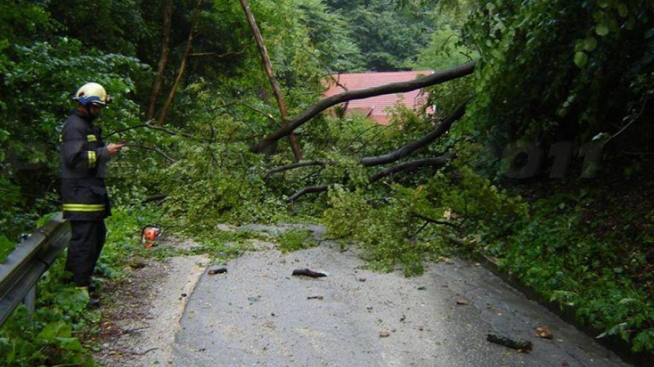 Ponekod so močnejše nevihte z nalivi in močnimi sunki vetra, ki podira drevje, navaja Prometno-informacijski center za državne ceste.