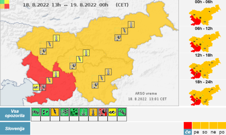 Agencija Republike Slovenije za okolje je za vso Slovenijo izdala oranžno opozorilo za veliko možnost neviht. Ta je že dosegla Ljubljano, kjer je orkanski veter povzročal številne preglavice. Podiral je strehe in drevesa.