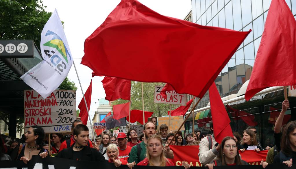 Na Kongresnem trgu v Ljubljani je bil danes delavski protest, ki so ga pripravili v sindikatih Mladi plus in Zasuk, društvu Iskra in Centru za družbeno raziskovanje - Cedra. Potekal je pod geslom Prvi maj delavstvu nazaj!