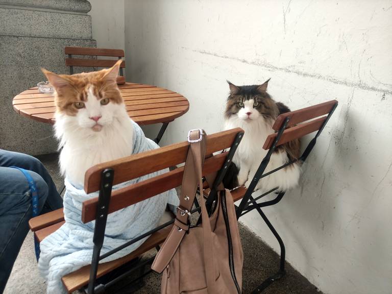 Lucky in Sky sta mački pasme Maine Coon. Njun lastnik Peter Eržen ju opiše kot »nežna velikana«. Namreč, vsak ima kar deset kilogramov.