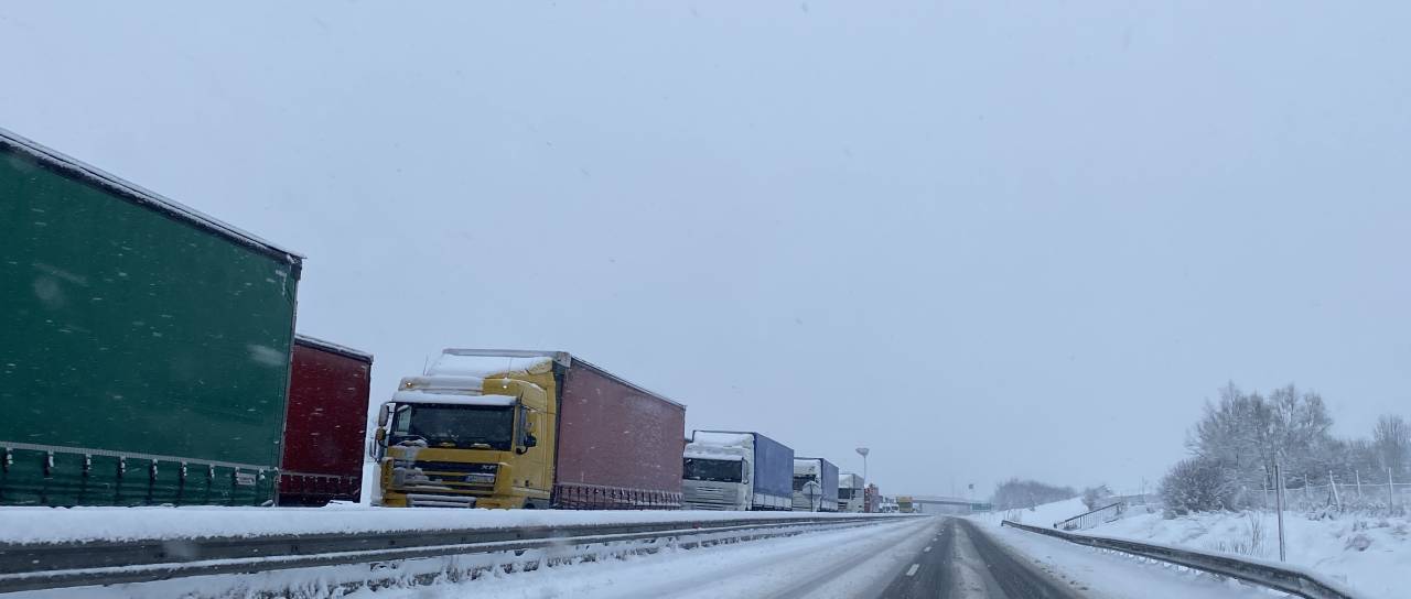 Zdrsnilo je več tovornih vozil. Tovornjake iz smeri Murska Sobota izločajo iz prometa na počivališče Sveti Jurij ob Ščavnici. Nastal je kar desetkilometrski zastoj.