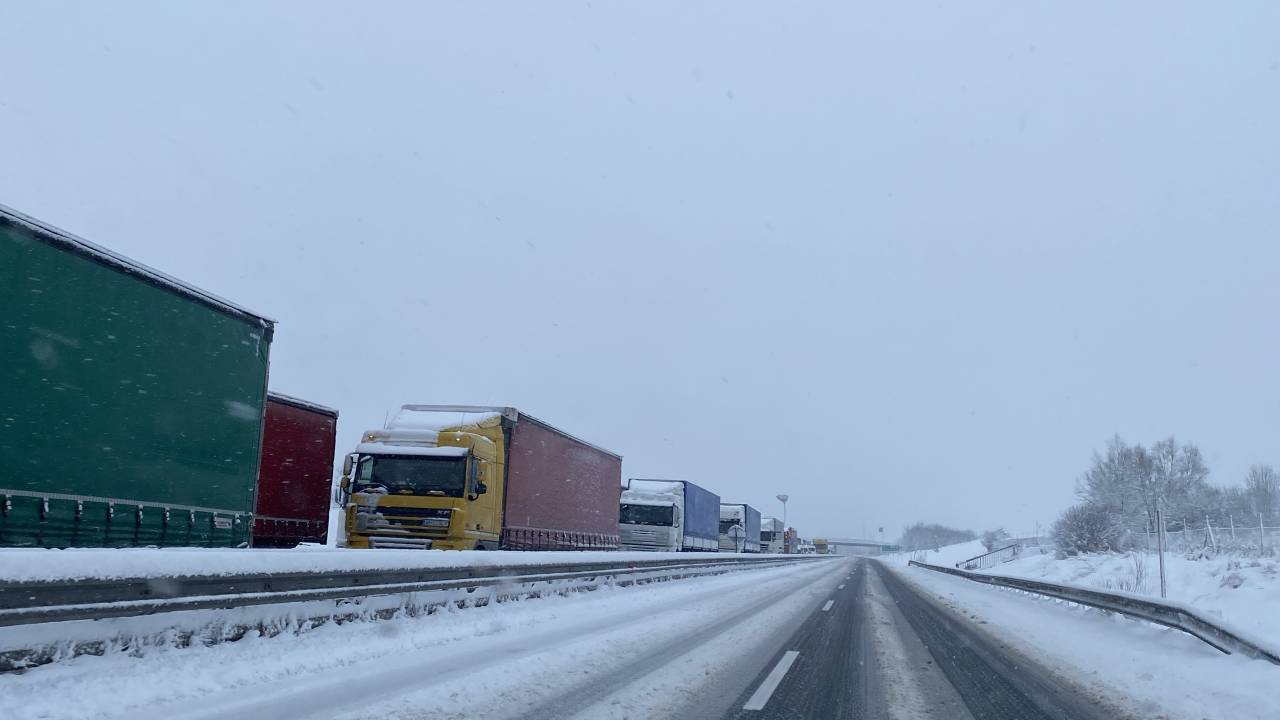 Zdrsnilo je več tovornih vozil. Tovornjake iz smeri Murska Sobota izločajo iz prometa na počivališče Sveti Jurij ob Ščavnici. Nastal je kar desetkilometrski zastoj.
