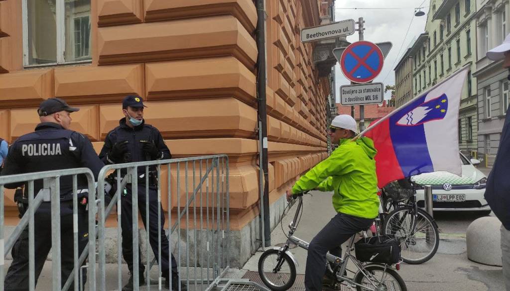 FOTO in VIDEO: Protestniki zbrani pred ustavnim sodiščem, tega varujejo policisti