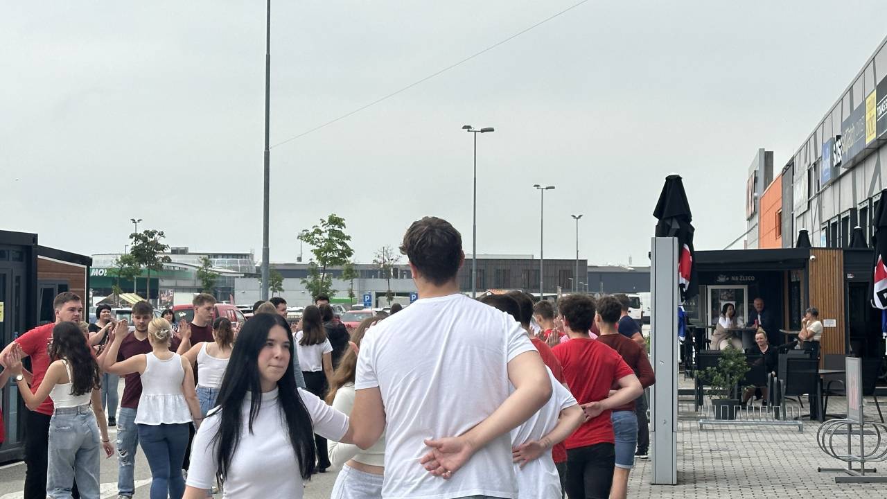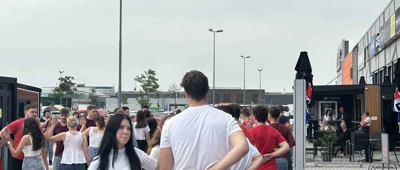Maturanti so danes točno opoldne znova zaplesali četvorko v več slovenskih mestih in se tako poslovili od srednje šole. Plesali so tudi na Ptuju.