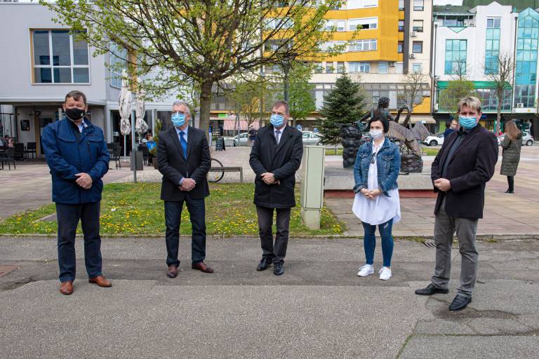 Župan Jevšek je ob odprtju razstave na Trgu kulture dejal, da je razstava poseben navdih za vse tiste, ki so se tako ali drugače soočali s koronakrizo.