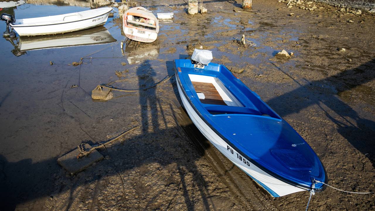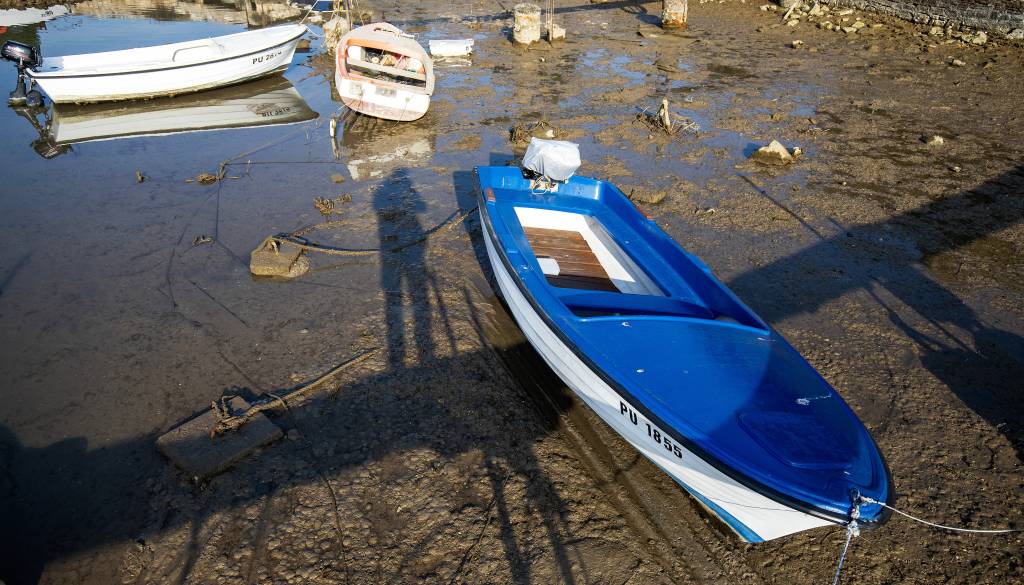 O izjemno nizki morski gladini že nekaj dni poročajo tudi iz drugih delov Jadrana. V Benetkah po nekaterih kanalih gondole in druga plovila sploh ne morejo pluti, številna so obtičala v blatu.