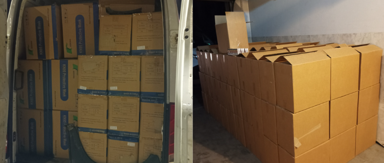 Med kontrolo pa je bilo ugotovljeno, da so za dvema vrstama kartonov zaščitnih mask, naloženi kartoni, v katerih so se nahajali cigareti. Poleg blaga je bilo nato zasežen tudi kombi.