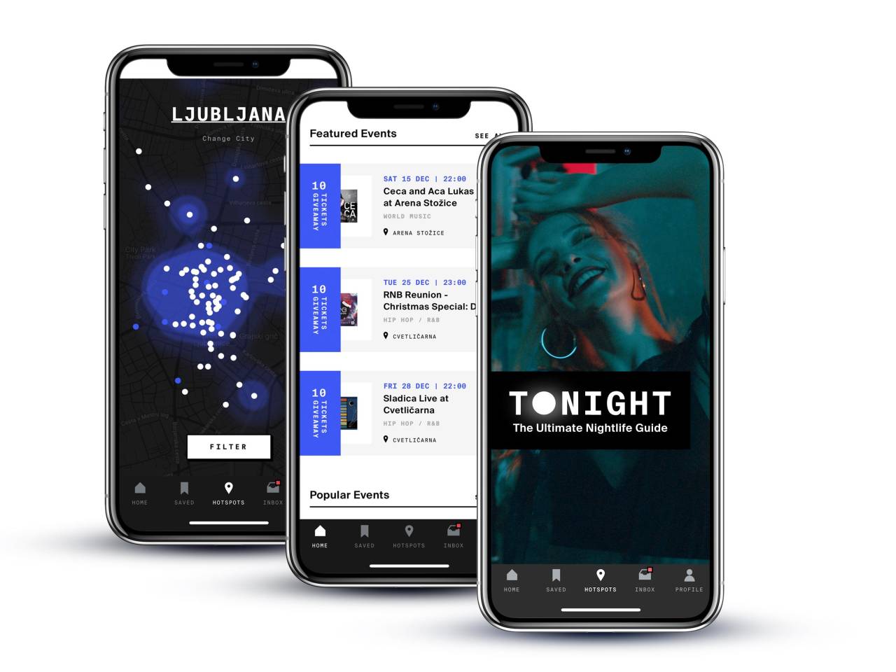 Tonight je edini glasbeni vodič, ki uporabniku omogoča popolnoma personalizirano odkrivanje novih glasbenih dogodkov. Poleg slovenskih mest aplikacija prinaša nabor dogodkov tudi drugod po Evropi, med drugim tudi v Berlinu, Londonu, Barceloni, Amsterdamu, Beogradu in Zagrebu.