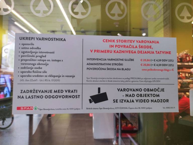 Na vratih trgovin Spar in tudi na vhodih številnih drugih objektov, v katere je za vstop potrebno izpolnjevanje pogoja PCT, so pritrjena obvestila, kjer je zapisano, kako bo varnostnik ukrepal v primeru nespoštovanja hišnega reda ali veljavne zakonodaje.