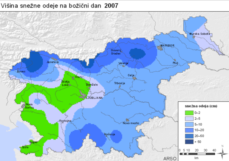 Na Ptuju smo na božični dan, 25. decembra, snežno odejo nazadnje imeli daljnega leta 2007. Sneg je takrat segal pet do deset centimetrov visoko.