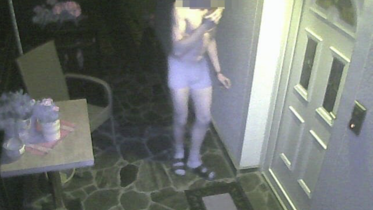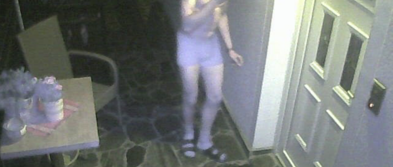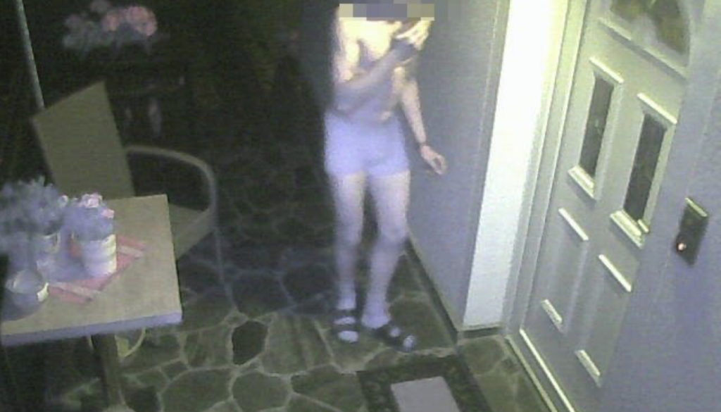 Uporabnik družbenega omrežja Facebook je kot dokaz priložil še fotografije moškega v spodnjih hlačah, ki ga je tik pred vhodnimi vrati ujela nadzorna kamera.