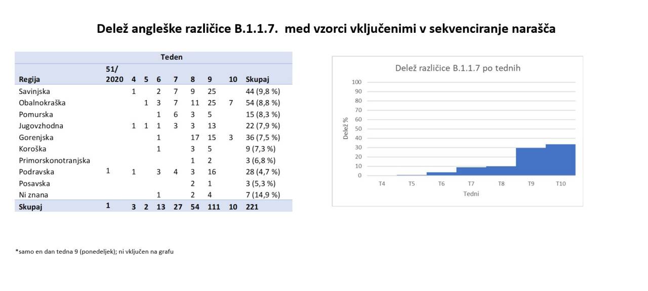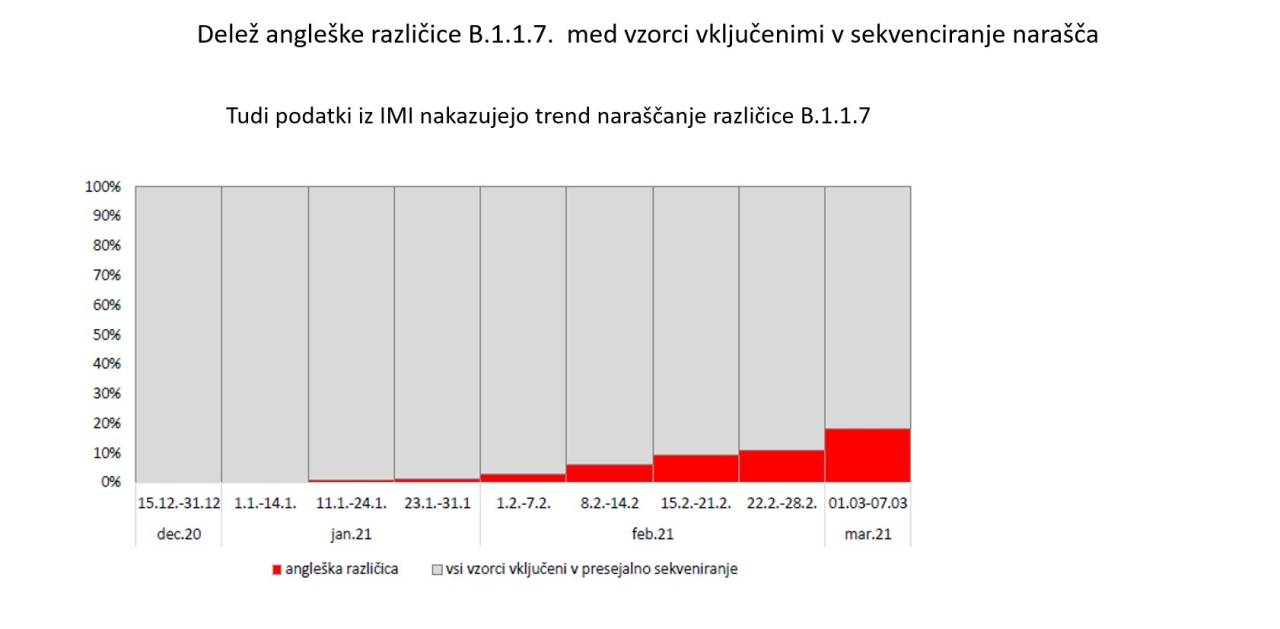 Tjaša Žohar Čretnik, direktorica Nacionalnega laboratorija za zdravje, okolje in hrano je dejala, da se je število primerov angleške različice virusa podvojilo.