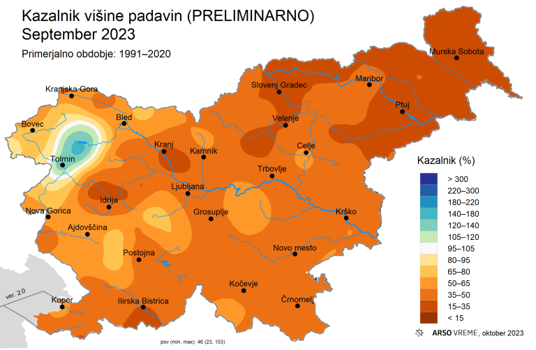 Višina padavin je bila septembra na državni ravni močno pod dolgoletnim povprečjem.