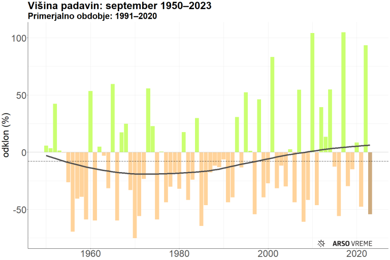 Septembrska višina padavin se po rahlem padanju od 50. do 80. let prejšnjega stoletja postopoma povečuje. Štiri najbolj namočene septembre v tem obdobju smo imeli v tem tisočletju.