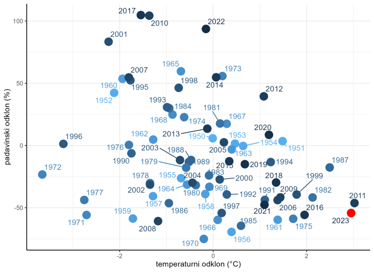 September 2023 je po skupni mesečni statistiki temperature zraka in višine padavin zelo podoben do sedaj najtoplejšemu septembru 2011, ki pa je bil na ravni Slovenije nekoliko bolj namočen.