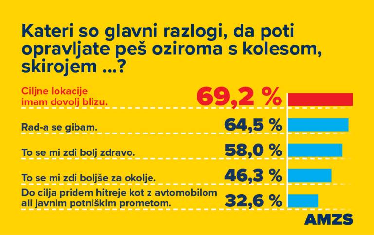 Iz vidika trajnostne mobilnosti je pozitiven delež tistih, ki obvladljive razdalje premagujejo s trajnostnimi oblikami mobilnosti.