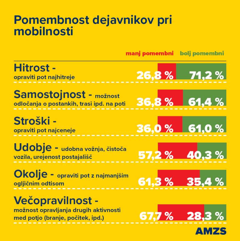 Odgovor na vprašanje o pomembnosti dejavnikov mobilnosti nakazuje tudi povsem pričakovano rešitev slovenskih mobilnostnih zagat: