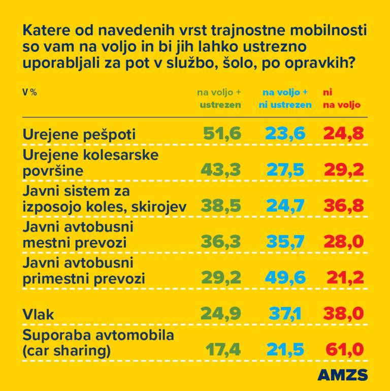 Raziskava v okviru Avto-moto zveze Slovenija je pokazala, da le manjši del prebivalcev Slovenije uporablja trajnostne oblike mobilnosti.