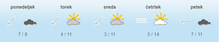 Dnevne temperature bodo od štiri do devet, na Primorskem do 15 stopinj Celzija.