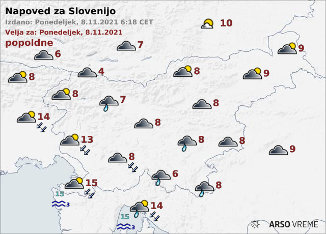 Popoldne bodo padavine ponehale, oblačnost se bo pričela trgati, napovedujejo meteorologi.