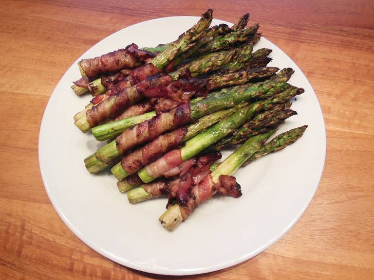 Ker se začenja sezona piknikov, lahko šparglje ovite v slanino ali pršut popečemo tudi na žaru.