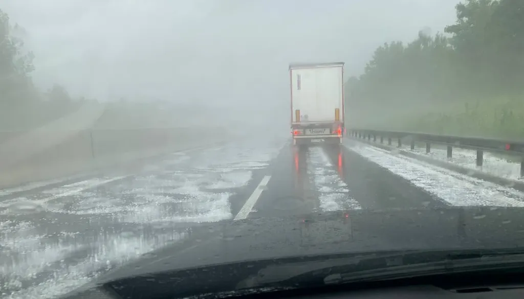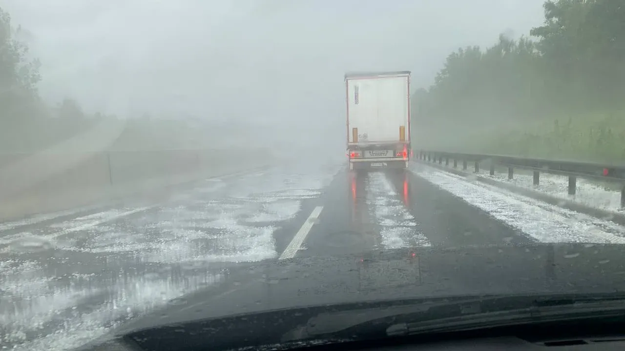 Dolenjska avtocesta se je danes popoldne soočila s kaotičnim stanjem zaradi silovitega neurja, ki je močno zmanjšalo vidljivost in prineslo ogromno točo.