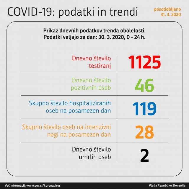 Zraven tega so v ponedeljek in danes zaradi koronavirusa umrle štiri osebe.