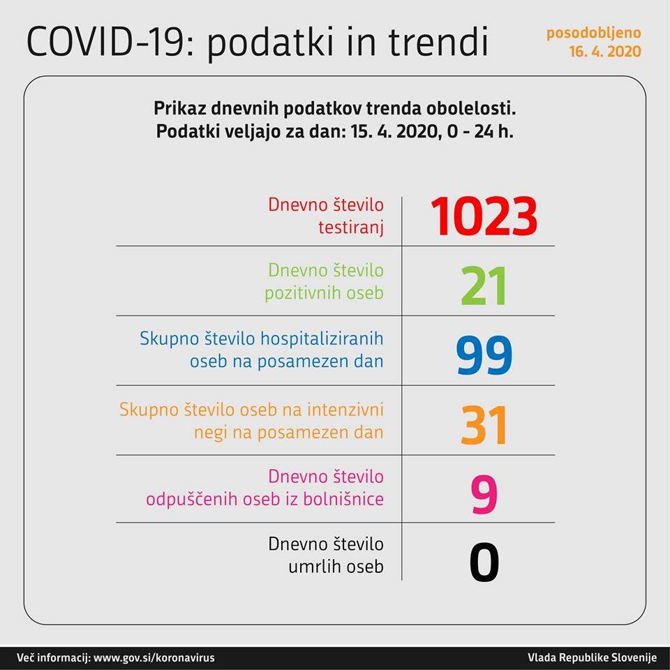 Včeraj, 15. aprila, so v Sloveniji opravili 1.023 testiranj za koronavirus.
