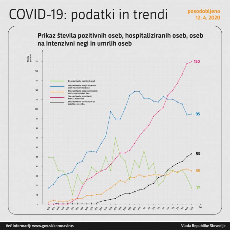 Skupno število hospitaliziranih je 95, od tega je na intenzivni negi 35 oseb.