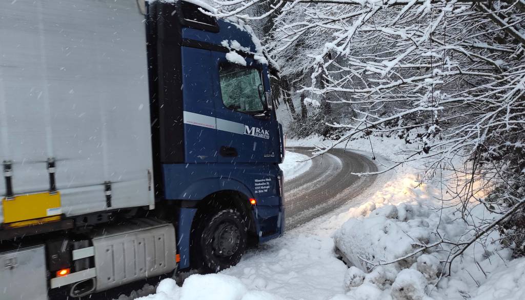 Obilno sneženje povzročalo težave na Štajerskem, Koroškem, Dolenjskem in v Zasavju.