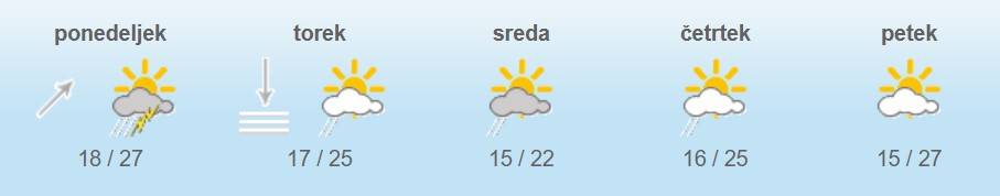 Danes dopoldne bo oblačnost naraščala, napovedujejo vremenoslovci Agencije za okolje. V severni Sloveniji se bodo začele pojavljati krajevne plohe in nevihte, popoldne in zvečer pa tudi drugod. Možne bodo tudi močnejše nevihte s sunki vetra. Najvišje dnevne temperature bodo od 22 do 30 stopinj Celzija.