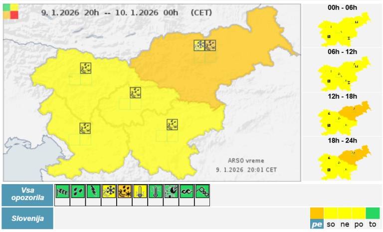 V petek zvečer bo še velika verjetnost poledice in žleda. Jutri bo sprva še oblačno, dopoldne bodo padavine povečini ponehale.
