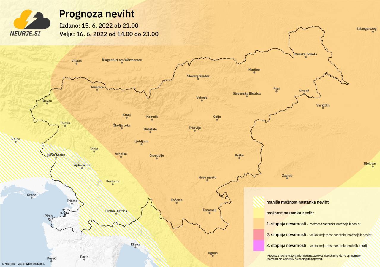 »V kombinaciji z visokimi temperaturami zraka in dokaj ugodnimi vetrovnimi pogoji bodo, ob bolje razvitih nevihtnih celicah, možni močnejši nalivi, silovitejši sunki nevihtnega piša in toča,« so zapisali.