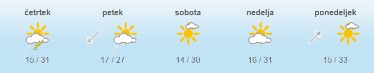 Najvišje dnevne temperature bodo od 26 do 32 stopinj Celzija, napovedujejo meteorologi Agencije za okolje.
