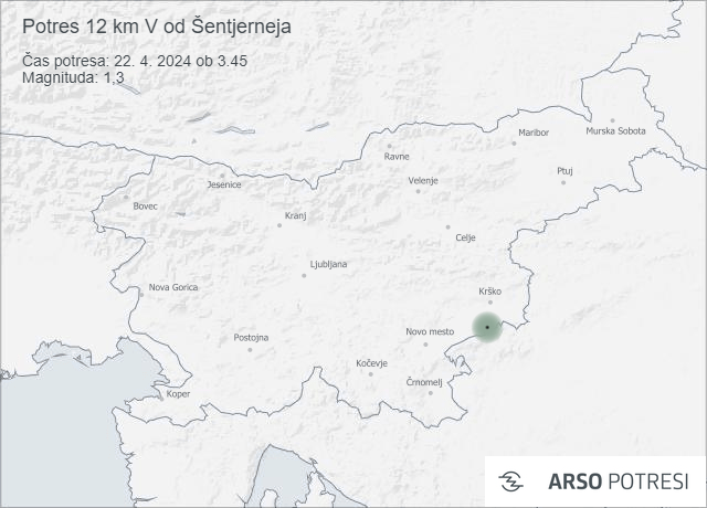Seizmografi državne mreže potresnih opazovalnic so danes ob 3.45 zabeležili šibek potresni sunek, magnitude 1,3.