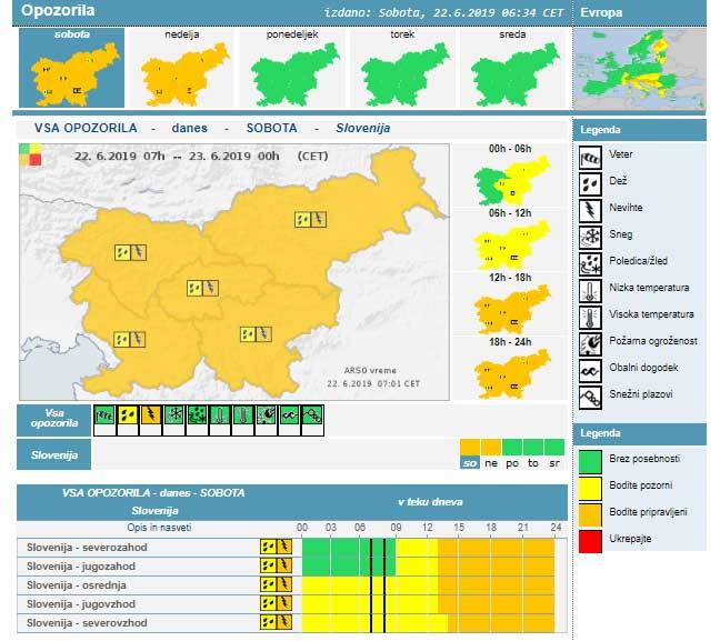 Neurje.si medtem opozarja, da bodo izpolnjeni vsi osnovni pogoji za nastanek močnejših neviht, ki lahko ponekod ustvarijo debelo točo, močne sunke nevihtnega piša ter silovite nalive. Kot pišejo, je 3. stopnja nevarnosti izdana za del notranjosti Hrvaške in skrajni vzhod Slovenije, kjer bo največjo nevarnost predstavljala debela toča, 2. stopnja nevarnosti pa velja za ostale dele Slovenije, kjer so prav tako možne močnejše nevihte z intenzivnimi nalivi, sunki vetra in lokalno debelejšo točo.