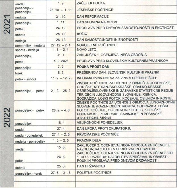 Med 21. in 25. februarjem za učence z območja: