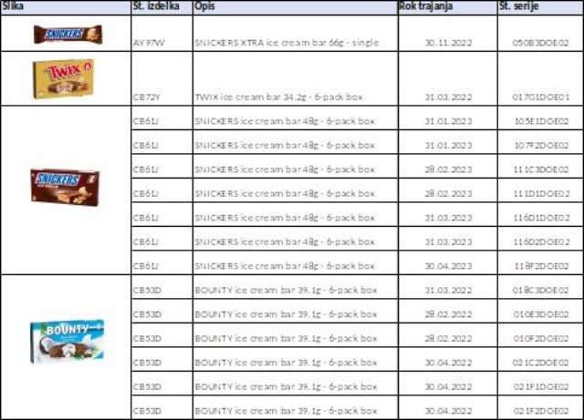 Potrošniki, ki so omenjene izdelke kupili, naj se obrnejo na elektronski naslov [email protected].