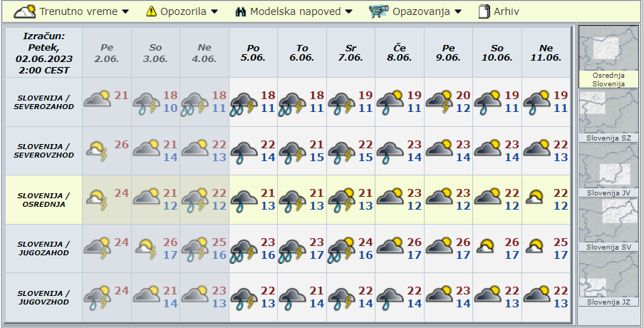 »Ob razmeroma večji vlažnosti in višjih temperaturah lahko konvektivne padavine beležimo povsod po državi. Prve nevihtne celice pri nas bodo nastale na zahodu države ter v hribovitih in goratih predelih.