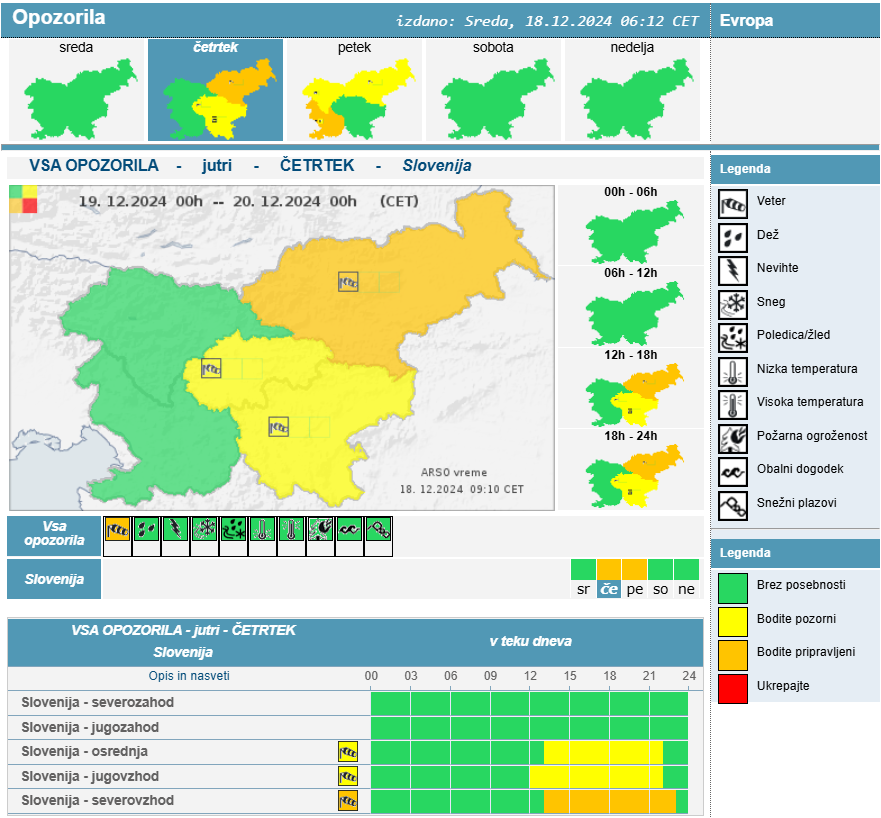 Voznikom in pešcem svetujejo previdnost, saj bo veter otežil gibanje, predvsem na odprtih površinah.