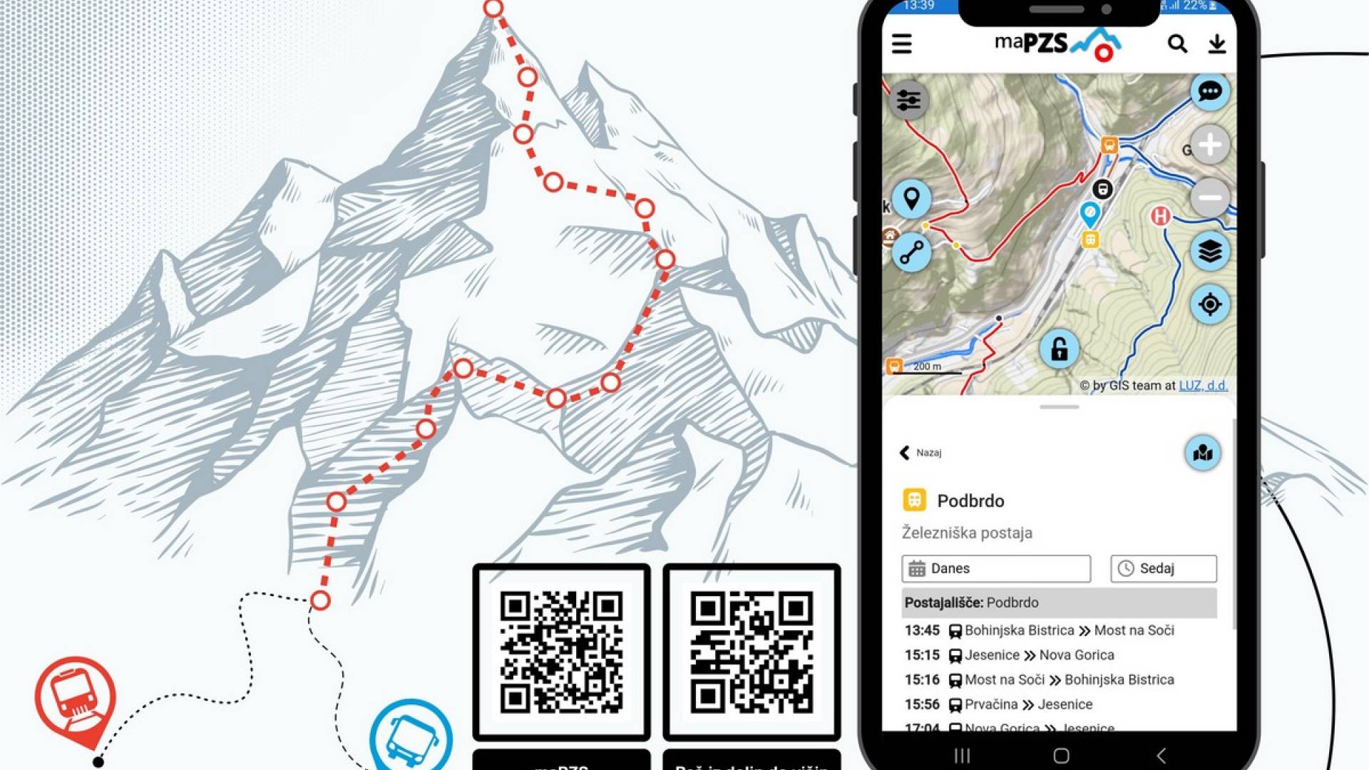 Aplikacija Planinske zveze Slovenije za lažje načrtovanje izletov in orientacijo na terenu maPZS po novem vključuje tudi tako imenovani sestavljalnik poti ter prikaz voznih redov avtobusov in vlakov na vseh postajališčih v Sloveniji.