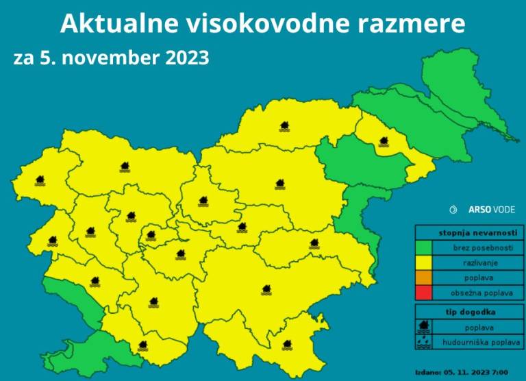 Vodnatost rek v večjem delu države se še povečuje, nekatere se razlivajo.