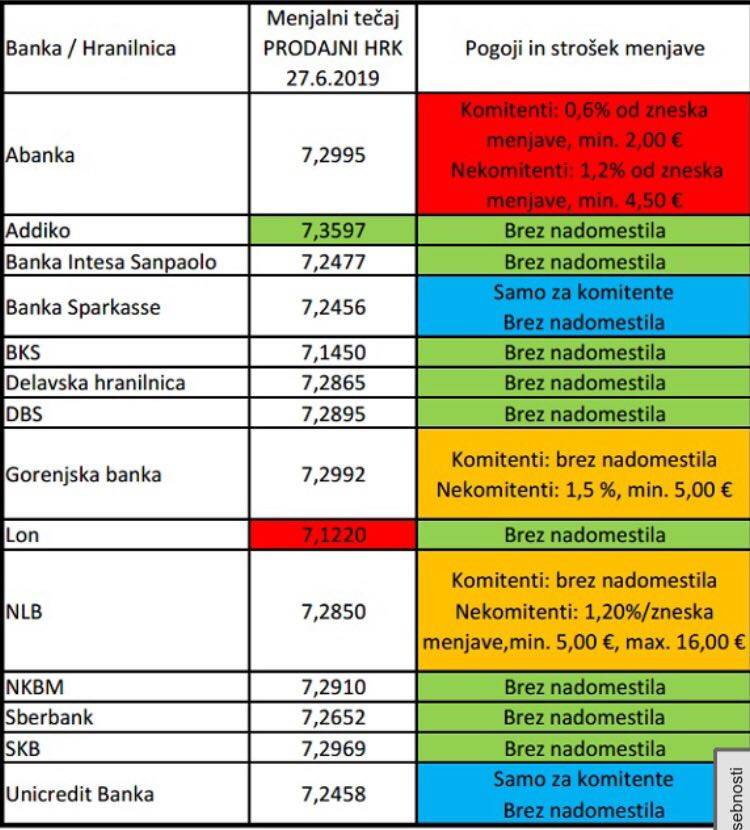 Nekatere banke za menjavo zaračunavajo visoke provizije: Gorenjska banka in NLB le nekomitentom zaračunajo najmanj 5 evrov, Abanka pa tudi svojim strankam zaračuna najmanj 2 oziroma največ 4,5 evrov. V Banki Sparkasse in UniCredit banki pa lahko tuje valute kupijo le njihove stranke.