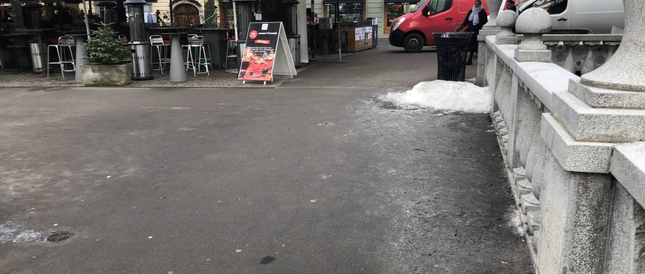 Če temperatura pade pod ledišče, medtem ko so tla še mokra, se bo na tlakovanih površinah zaradi ponovnega zmrzovanja verjetno oblikoval črni led.