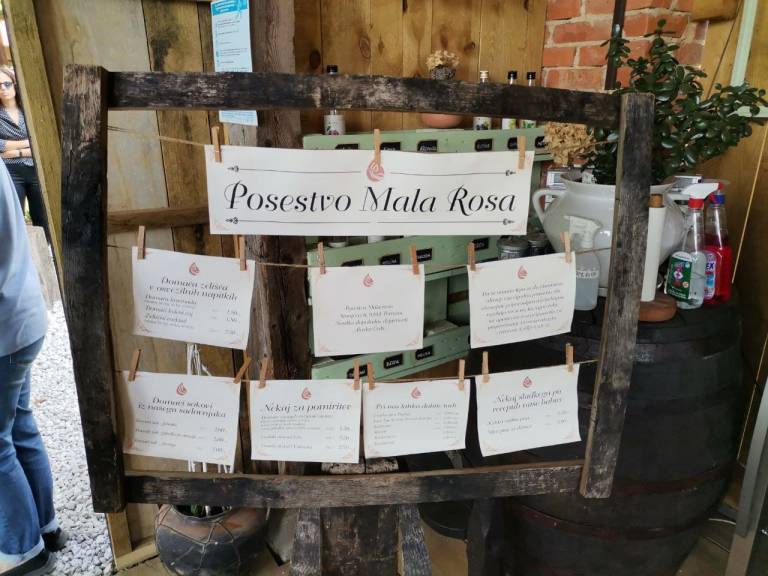 Pri njih najdemo aronijo, jedilno sivko, zelišča, posebno pozornost pa namenjajo sadovnjaku. Kot posebnost v poletnih mesecih pod senikom ponujajo izdelke iz jedilnih vrtnic.