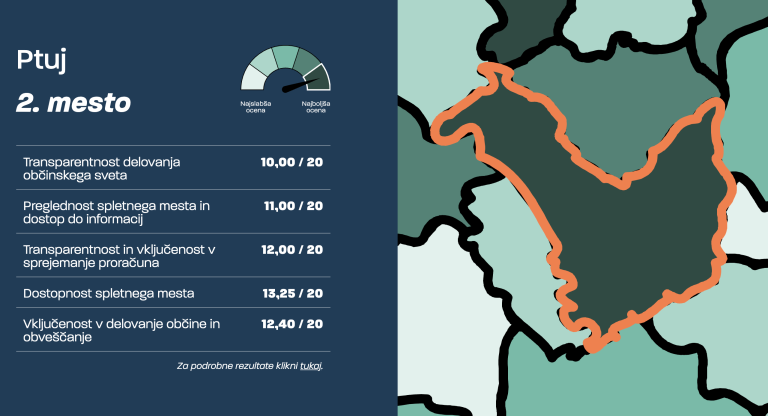 Katero mesto zaseda Mestna občina Ptuj na lestvici transparentnosti? Izsledki raziskave kažejo, da slovenske občine v veliki meri ne omogočajo ustrezne participacije ali informiranja občank in občanov.
