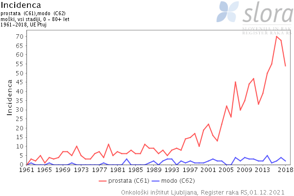 Tako smo na Ptuju leta 2000 potrdili že 19 primerov raka prostate letno, leta 2010 44 primerov, zadnji dostopni podatki za leto 2018 pa kažejo, da smo na Ptuju potrdili 54 primerov.