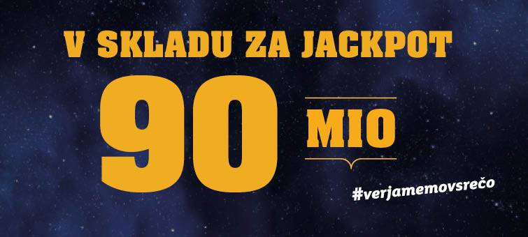 V petkovem žrebanju igre Eurojackpot znaša sklad za glavni dobitek Jackpot 90 milijonov, sklad za dobitek 5+1 pa 3 milijone evrov.